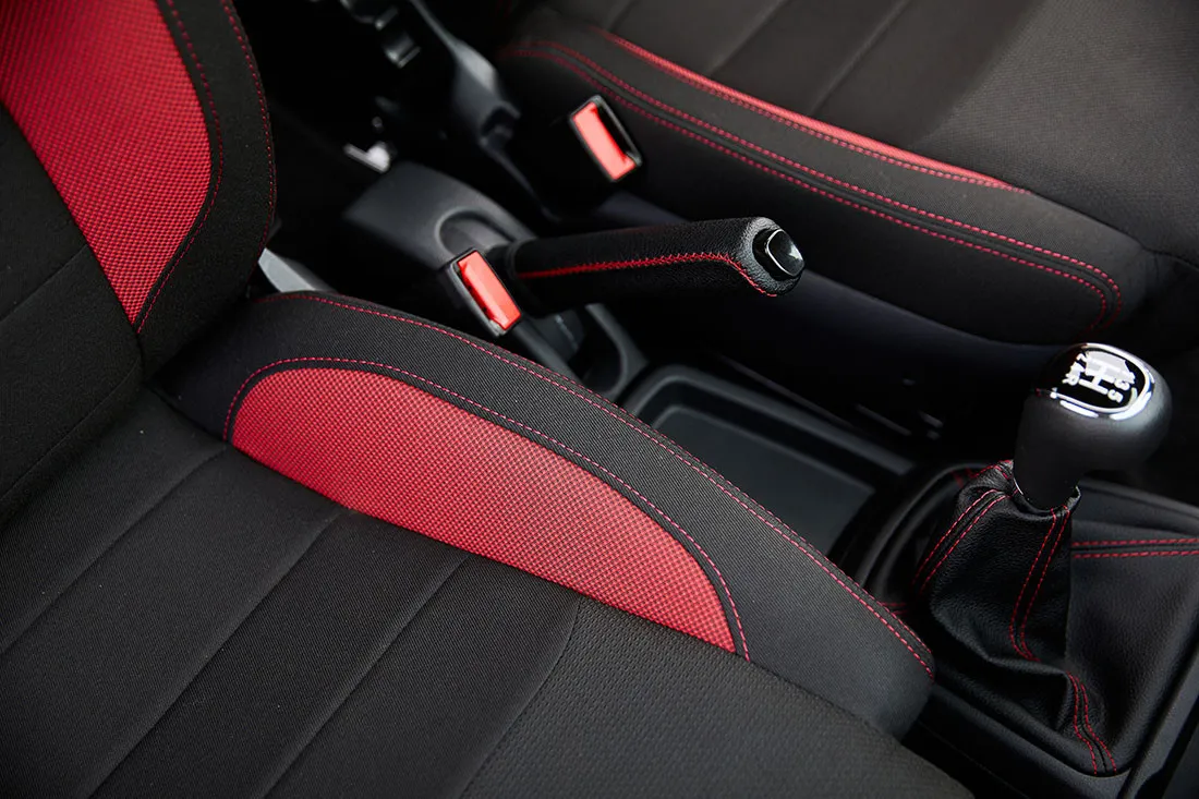 • Бамперы: в цвет кузова с красными вставками